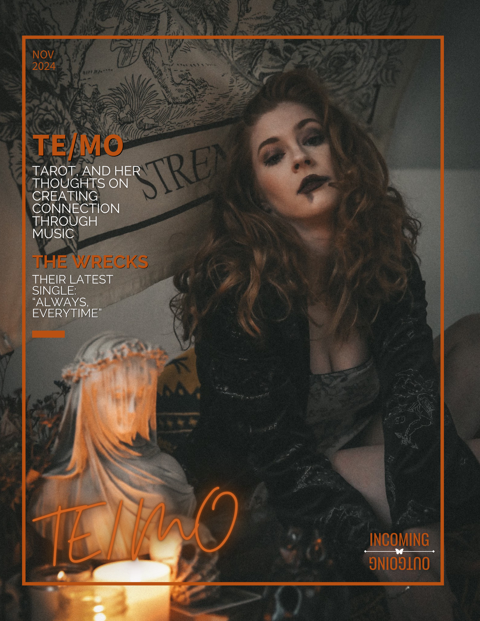 The 45th issue of Incoming and Outgoing! Incoming and Outgoing is a magazine based entirely around music, highlighting smaller up-and-coming artists. This month's issue features TE/MO as our cover star, and discusses new music from Jorge Rivera-Herrans, The Wrecks, Flora Cash, and more!