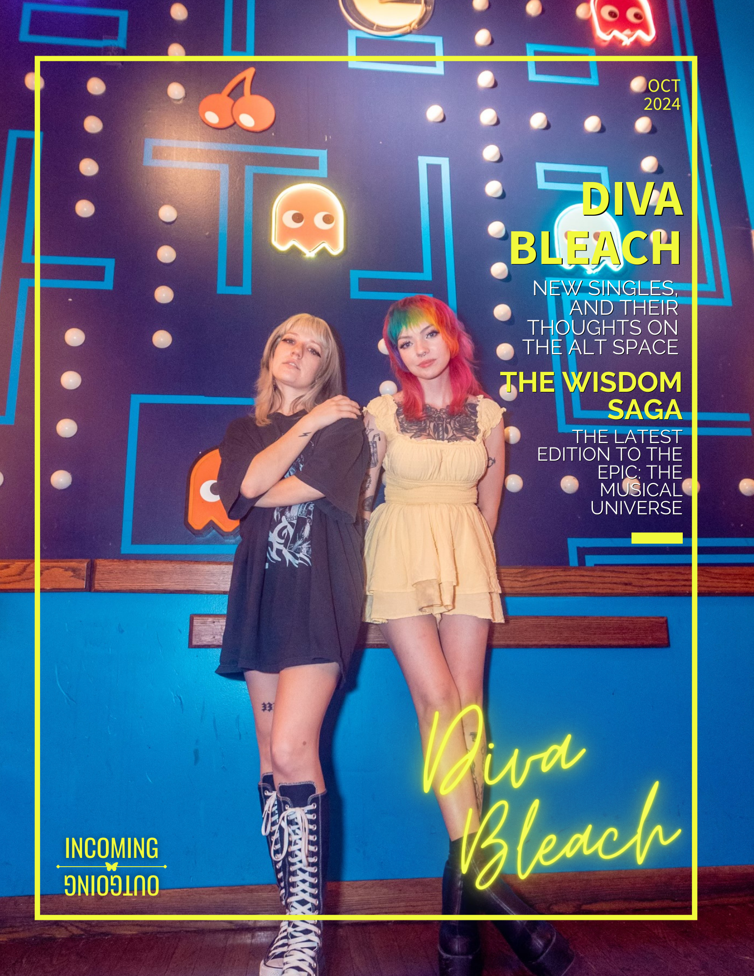 The 44th issue of Incoming and Outgoing! Incoming and Outgoing is a magazine based entirely around music, highlighting smaller up-and-coming artists. This month's issue features DIVA BLEACH as our cover star, and discusses new music from Paris Paloma, Jorge Rivera-Herrans, LE SSERAFIM, and more!
